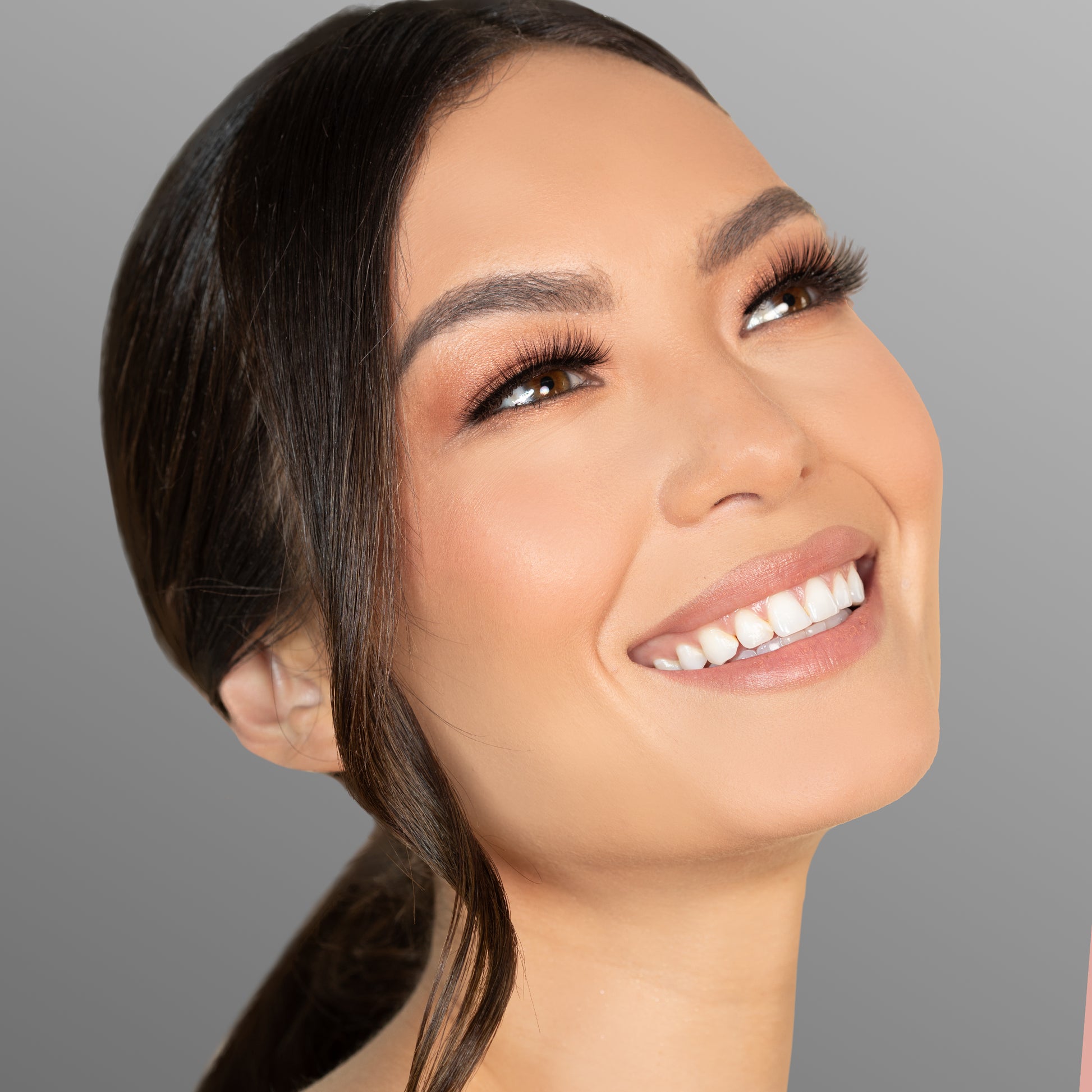Pro tip: Hold the eyelid down with one hand, gently stretching the eyelid to elongate the lash line. Using the other hand to apply the lash provides additional ease and control.
